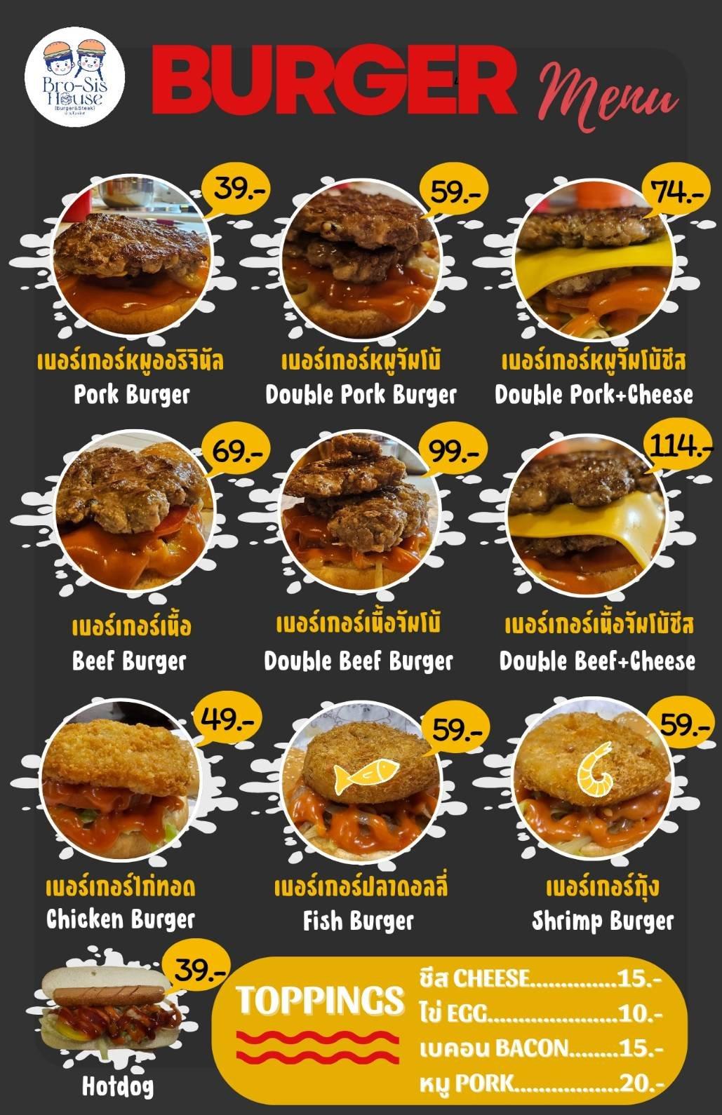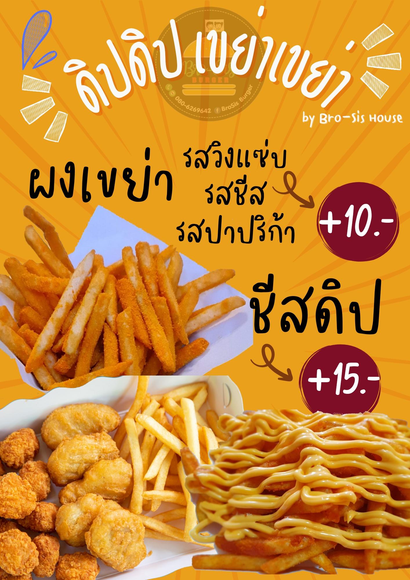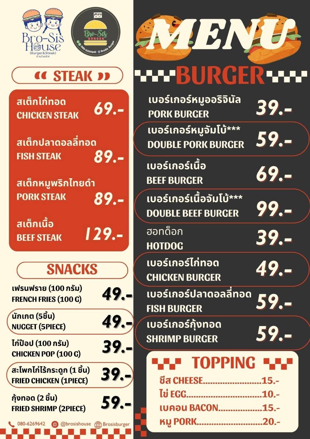 Bro-Sis House เกิดจากความตั้งใจที่จะสร้าง เบอร์เกอร์คุณภาพดี รสชาติไม่เหมือนใคร โดยผสมผสานเครื่องเทศไทยกับซอสสูตรพิเศษที่คิดค้นขึ้นเอง เพื่อให้ได้รสชาติกลมกล่อม ถูกปากทั้งคนไทยและต่างชาติ ทุกชิ้นทำสดใหม่ตามออเดอร์ ไม่ใช้ผงปรุงรสหรือวัตถุกันเสีย เพราะเราเชื่อว่า “ความอร่อยที่แท้จริง” เริ่มจากวัตถุดิบที่ดีและความใส่ใจในทุกขั้นตอน