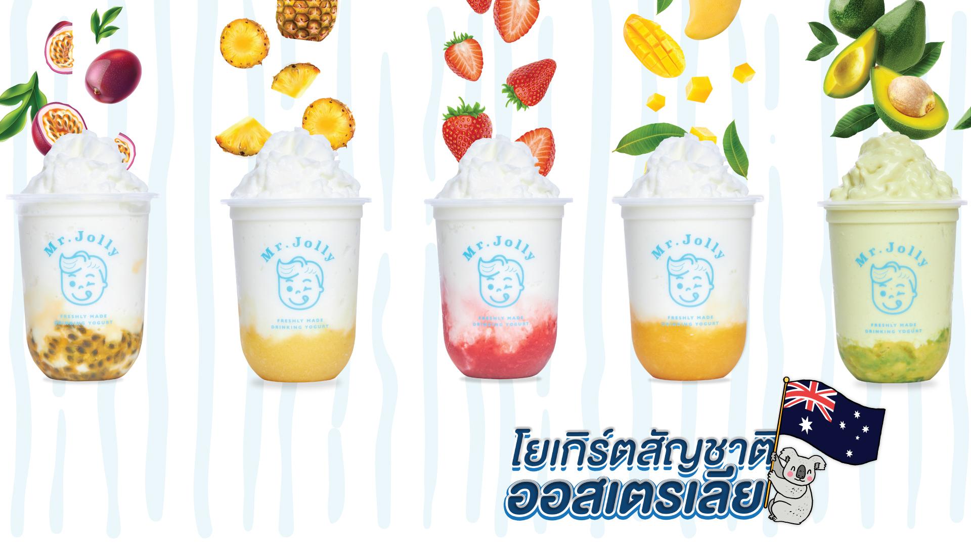 Mr. Jolly Yogurt เป็นแบรนด์โยเกิร์ตสัญชาติออสเตรเลียระดับพรีเมียมที่มุ่งเน้นความอร่อย สุขภาพดี และความสนุกสนานในการบริโภค ด้วยการนำเสนอเมนูโยเกิร์ตที่มีรสชาติหลากหลาย ผสมผสานกับท็อปปิ้งที่สร้างสรรค์และสดใหม่ เราให้ความสำคัญกับคุณภาพวัตถุดิบและกระบวนการผลิตที่ได้มาตรฐาน เพื่อมอบประสบการณ์ที่ดีที่สุดให้กับลูกค้า ปัจจุบันมี ~20 สาขา